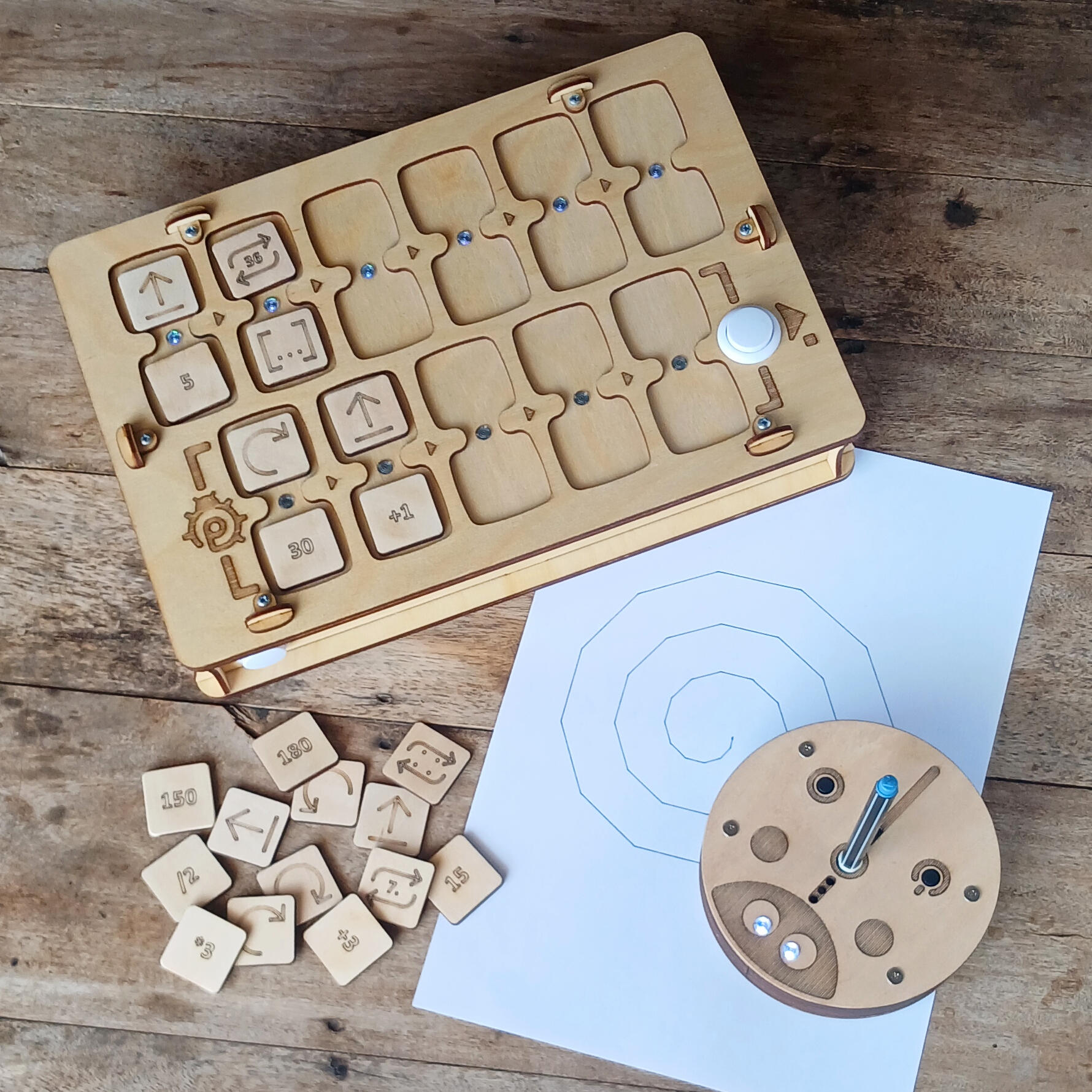 A wooden programmable robot, screen-free for kids from 4!